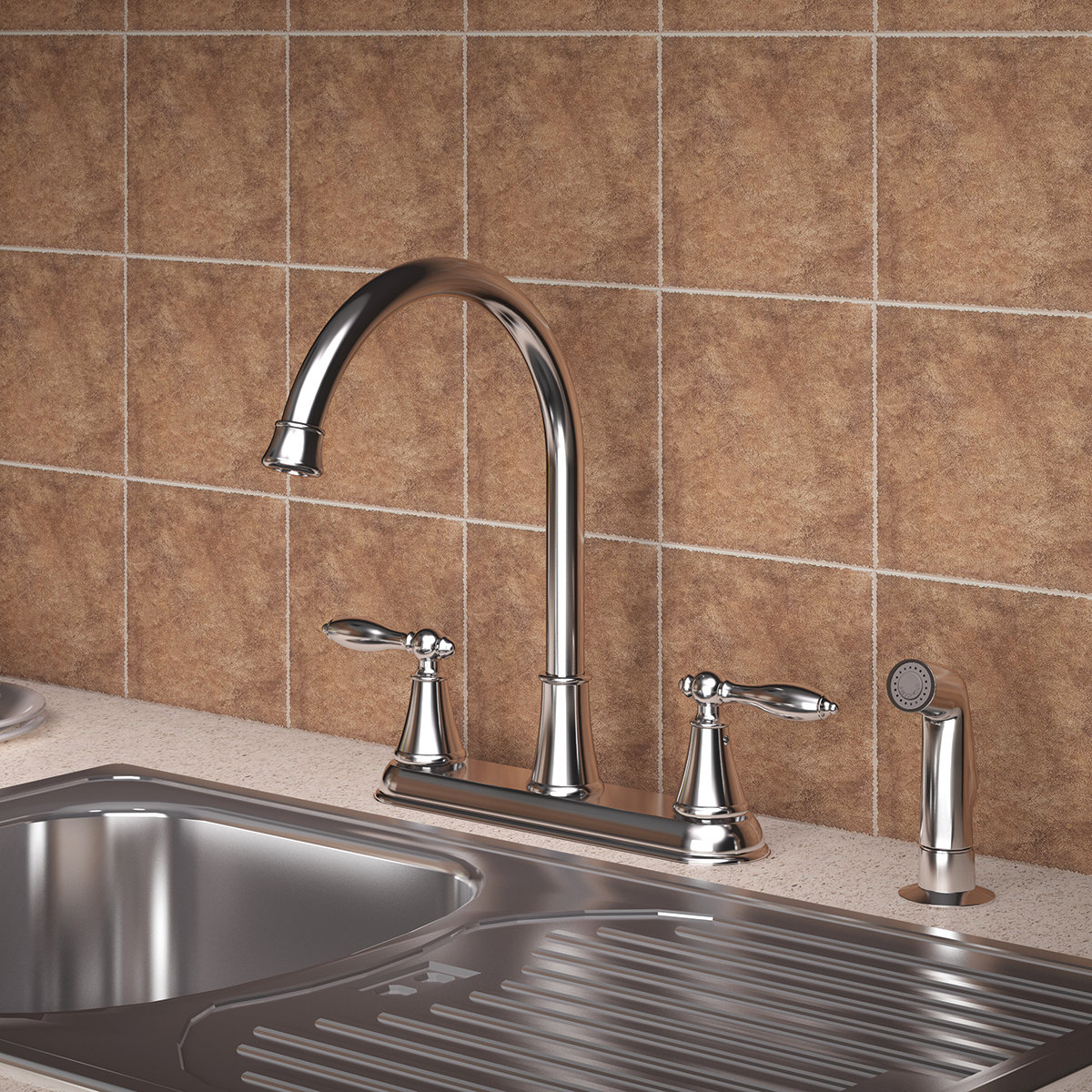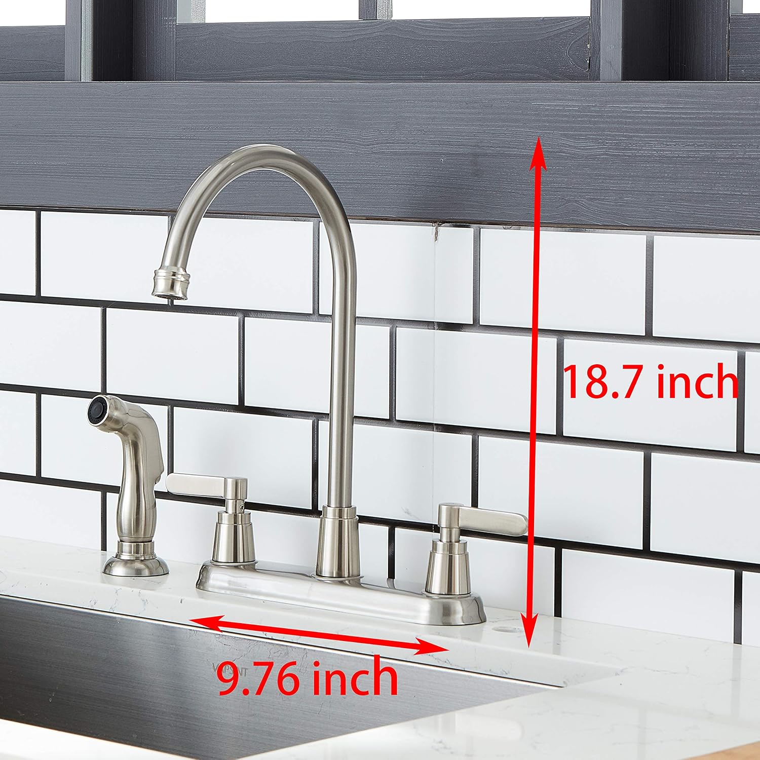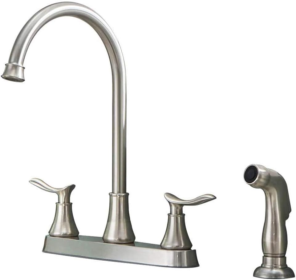 Modern Lead Free High Arc Swivel Spout Two Handle Side Sprayer Kitchen Faucet, Brushed Nickel Finished Kitchen Sink Faucet. 4.4 out of 5 stars 263. Kitchen Sink Sprayer Head Replacement for Moen Kitchen Side Sprayer with Kitchen Sink Faucet Spray Hose Kitchen Sink Pull Out Spray... For a top-rated kitchen faucet and side sprayer, one of the best options out there is the MOEN Walden Single-Handle Standard Kitchen Faucet. This product takes an old-time style and gives it a modern twist, featuring two metal levers connected by a bridge. The faucet's high-arc spout balances... RKF Pull Down Kitchen Faucet with