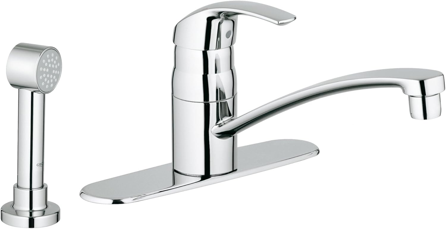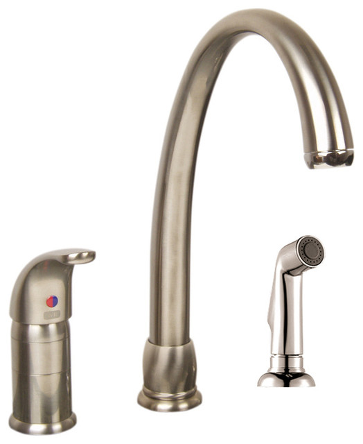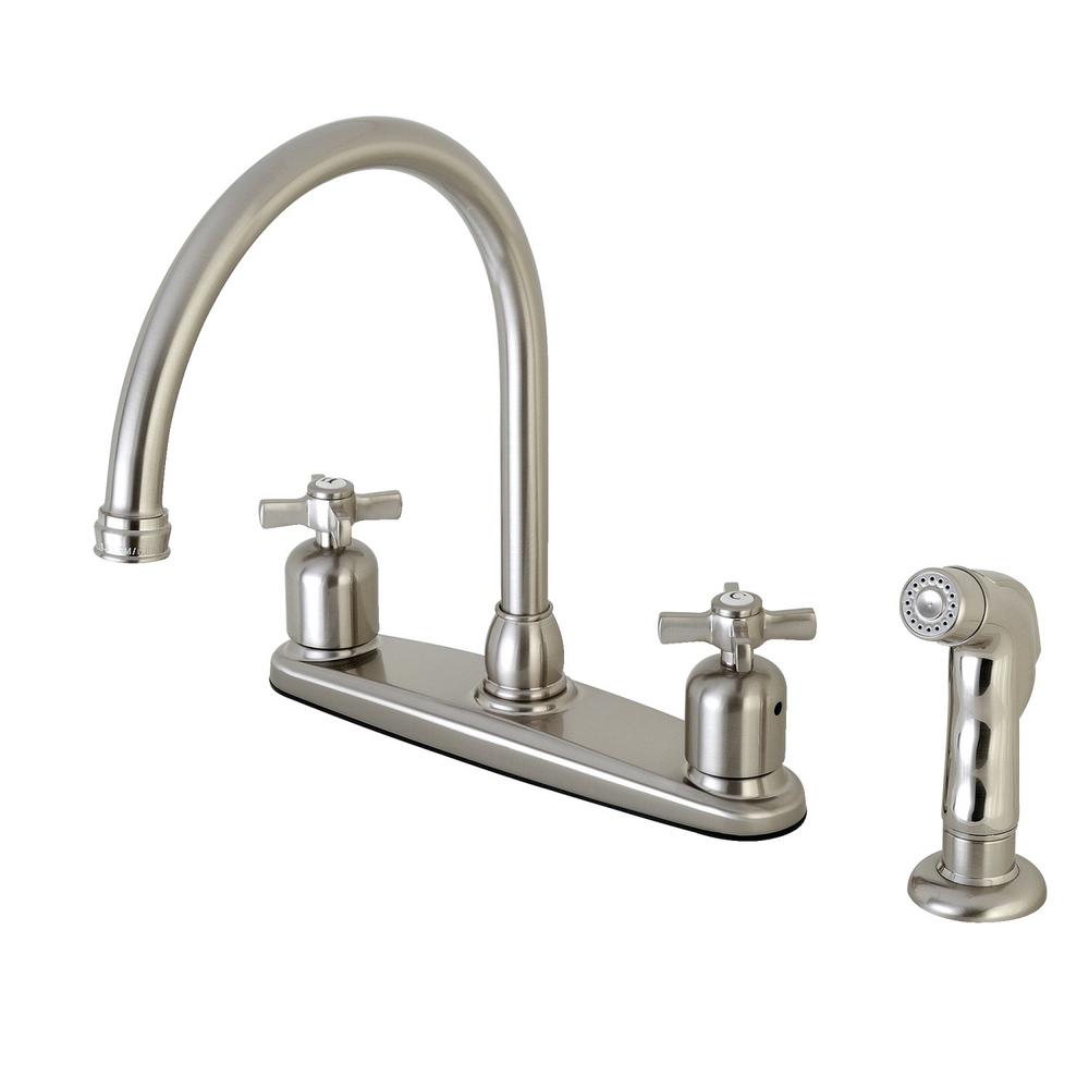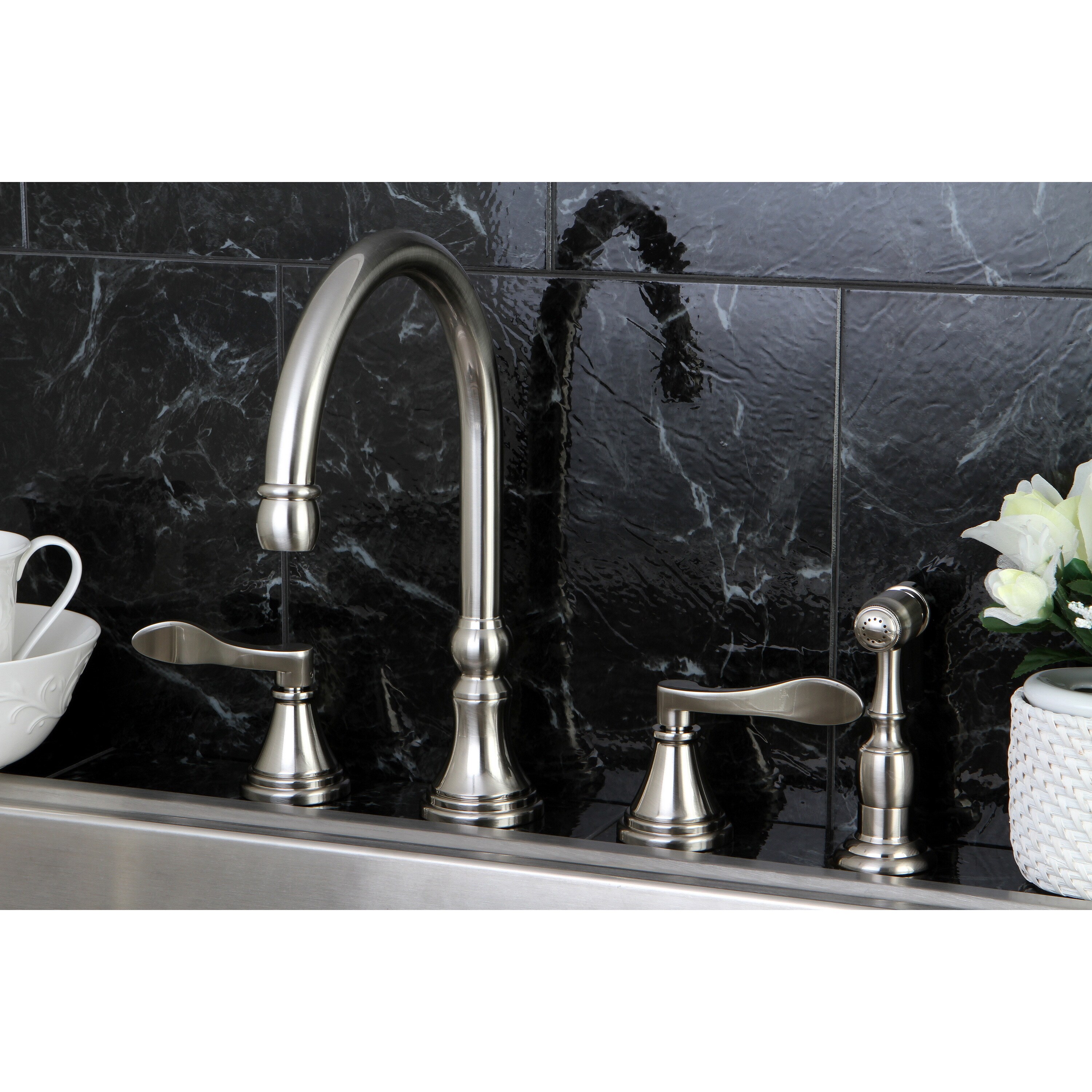 Modern Lead Free High Arc Swivel Spout Two Handle Side Sprayer Kitchen Faucet, Brushed Nickel Finished Kitchen Sink Faucet. 4.4 out of 5 stars 263. Kitchen Sink Sprayer Head Replacement for Moen Kitchen Side Sprayer with Kitchen Sink Faucet Spray Hose Kitchen Sink Pull Out Spray... For a top-rated kitchen faucet and side sprayer, one of the best options out there is the MOEN Walden Single-Handle Standard Kitchen Faucet. This product takes an old-time style and gives it a modern twist, featuring two metal levers connected by a bridge. The faucet's high-arc spout balances... RKF Pull Down Kitchen Faucet with