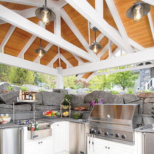 Welcome to our gallery of outdoor kitchen ideas. An outdoor kitchen area is a great way for you and your family and friends to extend the joy of cooking and eating a delicious meal from your home's backyard. While there are multiple covered outdoor kitchen ideas you can choose from, the easiest, most versatile, and least expensive to install is the canopy. Or, you can choose a more trendier canopy with striking architectural features to define the room, like this fun example from Houzz. [the_ad id="488017]. Check out these 101 outdoor kitchen ideas and designs, as well as discover the